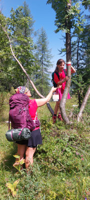 Dopo il pranzo e due chiacchere in compagnia ci avviamo sul sentiero del ritorno che ci porta al Lago Nero e poi per strada forestale, affacciata sulla Val d’Adige, fino a Cauria.